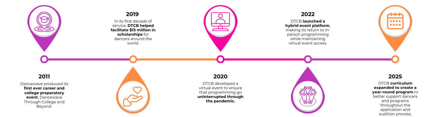 has grown to be the comprehensive program we know today. As one of five pillars that make up Dancewave, DTCB aims to advance accessibility within the higher education admissions process, ensuring that dance programs around the world reflect the breadth and diversity of the field.